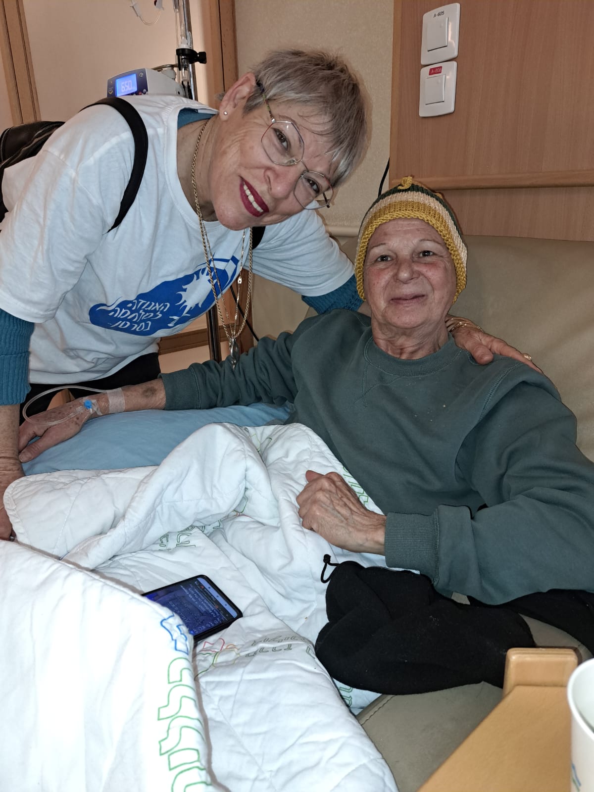 חווי שיקיאר, יו"ר סניף ראש העין חילקה כובעים לחולים בדוידוף . החולים שמחו לקבל את הכובעים והודו לחווי.