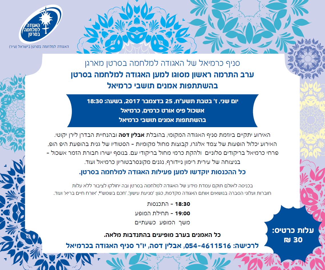 האירוע יתקיים ביום שני, 25/12/17 בשעה: 18:30 באשכול פיס אורט כרמים, כרמיאל.