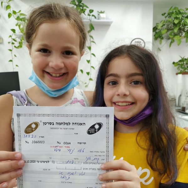 השבוע הגיעו הבנות מלוות בקרן טל, אמה של נעמי, למשרדי האגודה למלחמה בסרטן בגבעתיים ומסרו את תרומתן בגאווה ואושר.